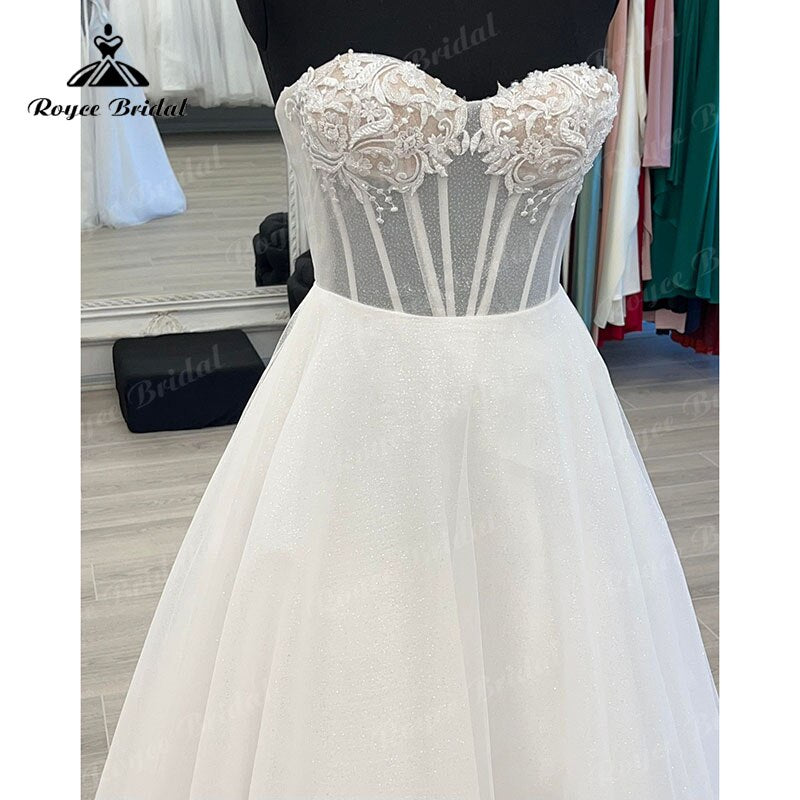 Robe de mariée grande taille à paillettes, épaules dénudées, corset, lacets dans le dos, décolleté en cœur, longueur au sol, 2022