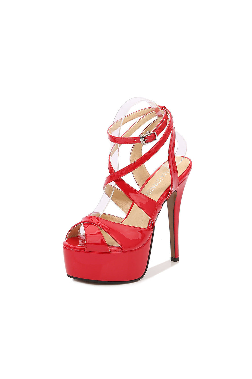 Crystal Rhinestone Peep Toe High Heels Ankle Strap Sandals