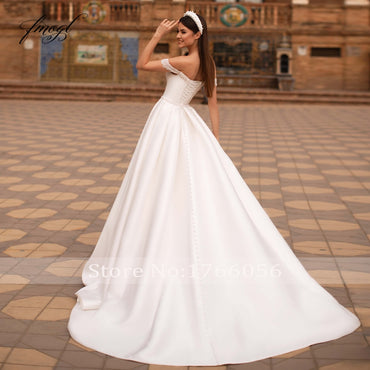 • Roycebridal Fmogl Vestidos De Noiva Sexy Boat Neck Vintage Wedding Dresses 2021 Luxury Beaded Pearls Sashes Matte Satin A Line Bride Gown