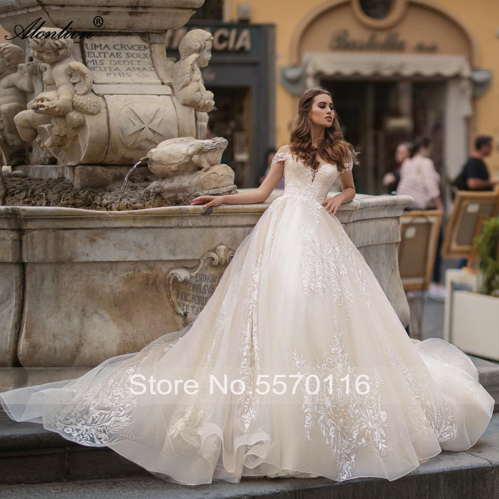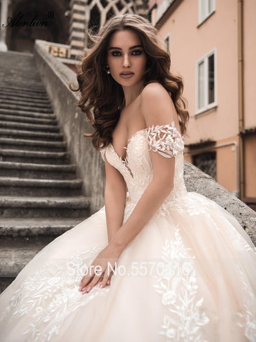 • Alonlivn Beauty Lace Ball Gown Wedding Gowns Sweetheart Delicate Off Shoulder Bridal Dresses