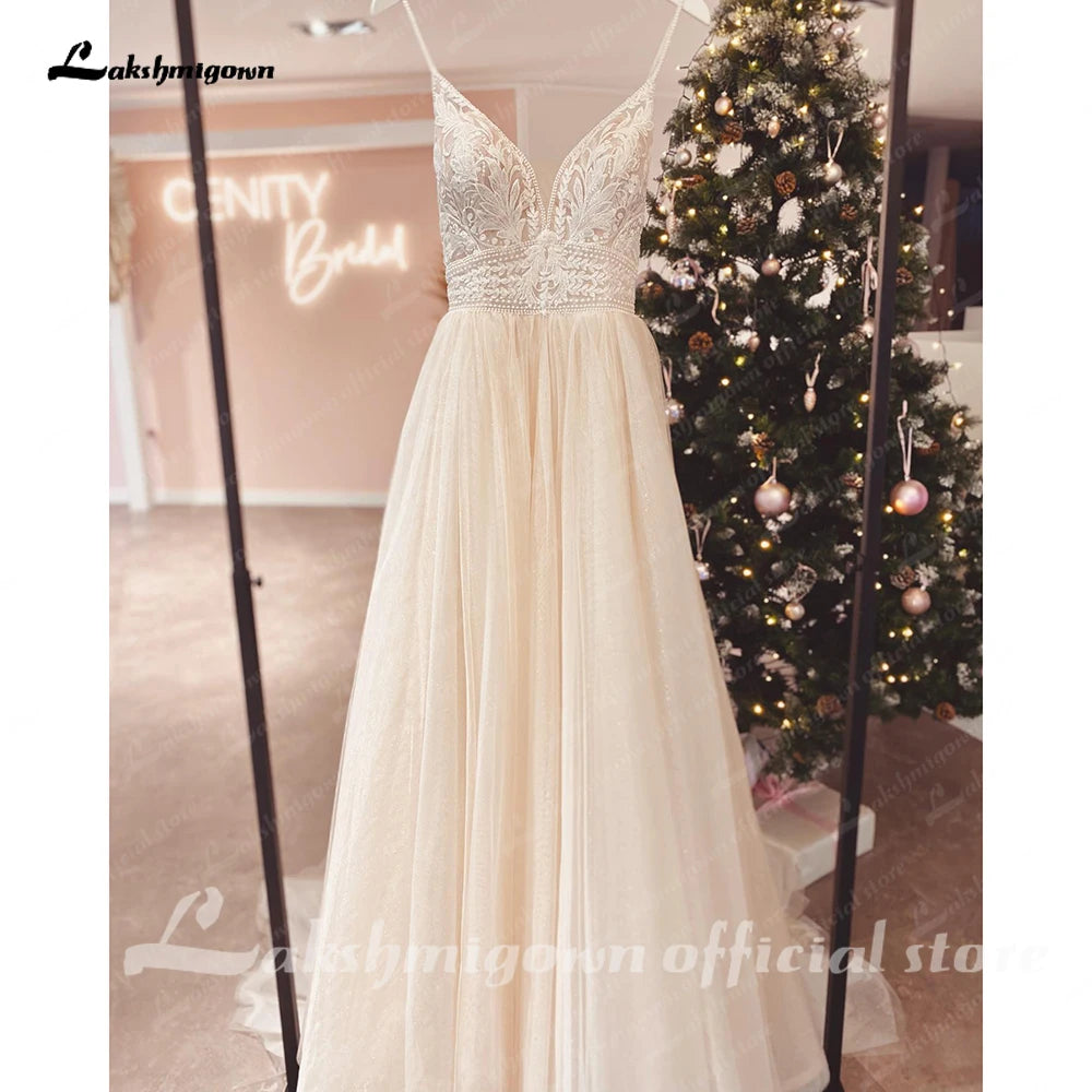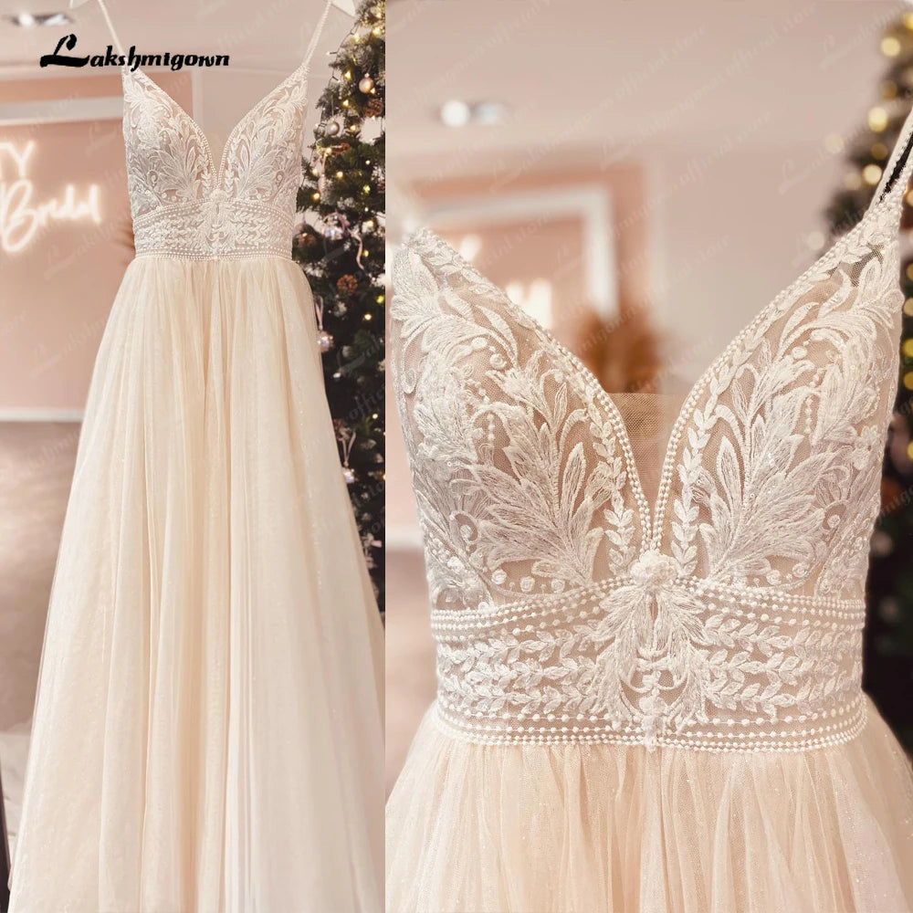 • Roycebridal Luxury Lace Wedding Dress For Women Spaghetti Straps Boho Style 2025 Sexy A Line Beach Bridal Gowns