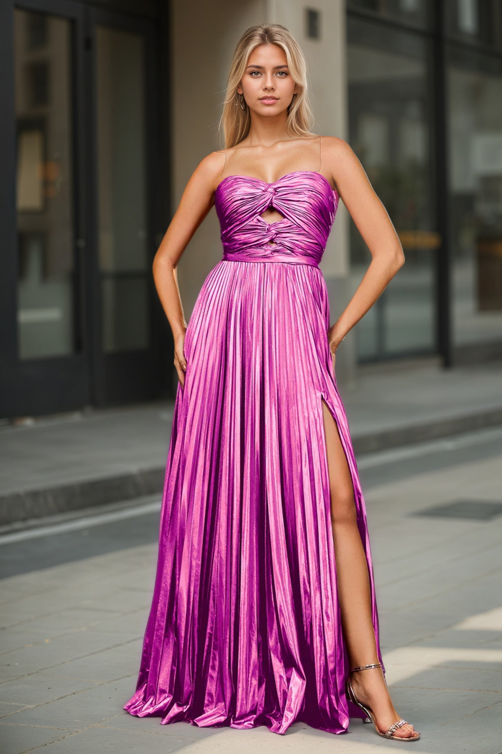 A-line Strapless Fuchsia Pleated Homecoming Dress with Keyhole