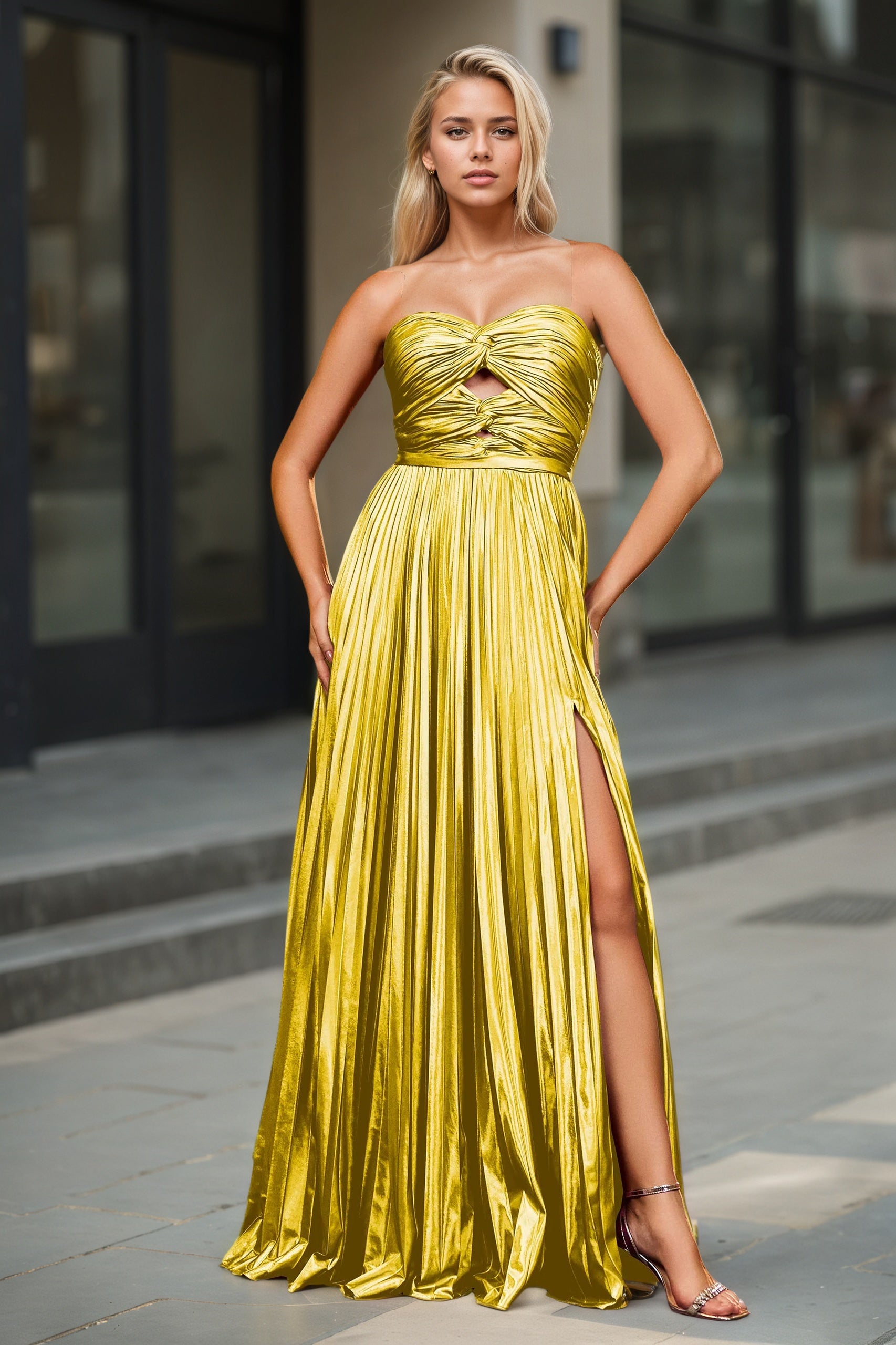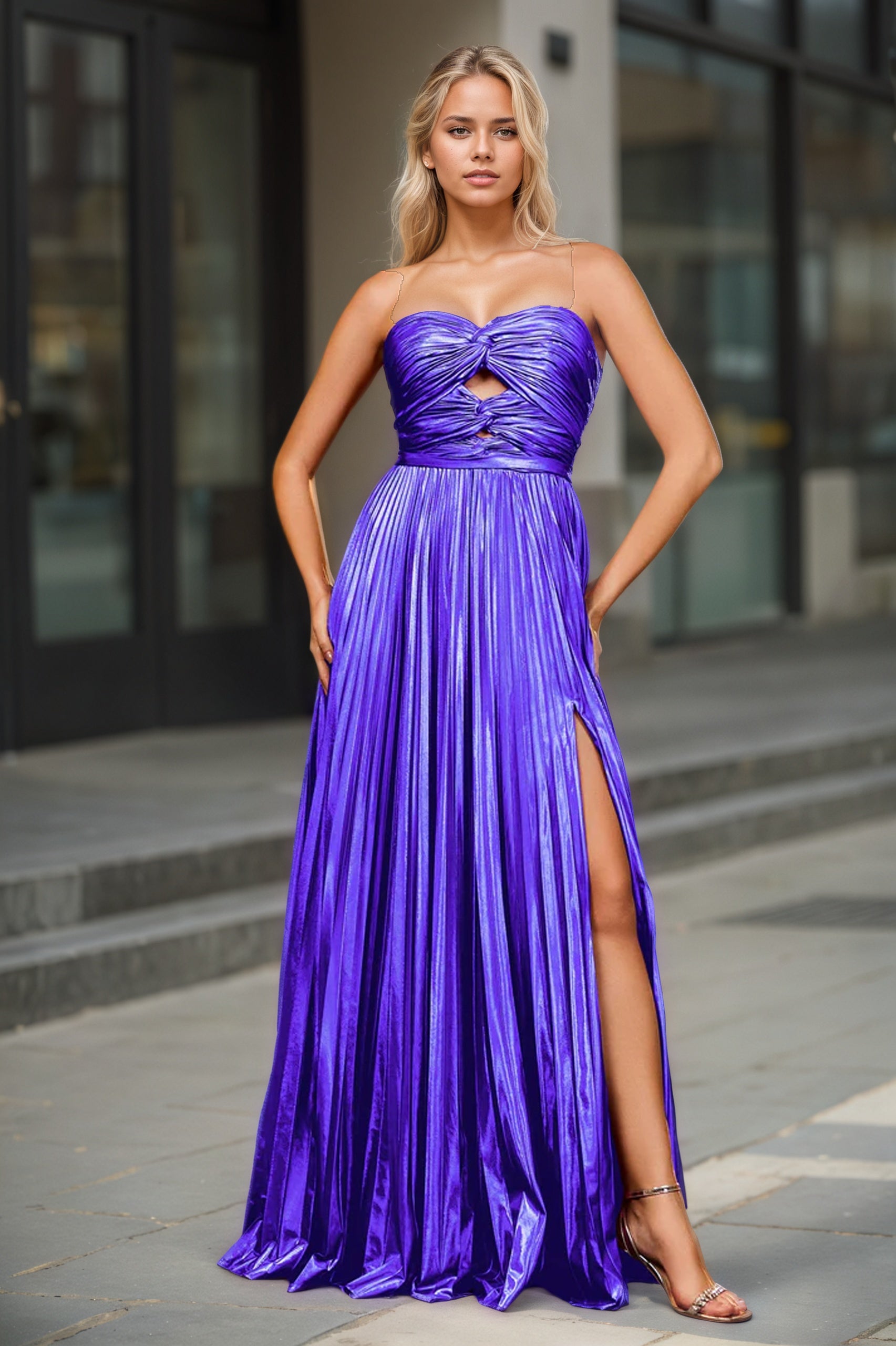 Description: This A-line strapless homecoming dress in vibrant fuchsia features elegant pleating and a tasteful keyhole detail, combining classic silhouette...