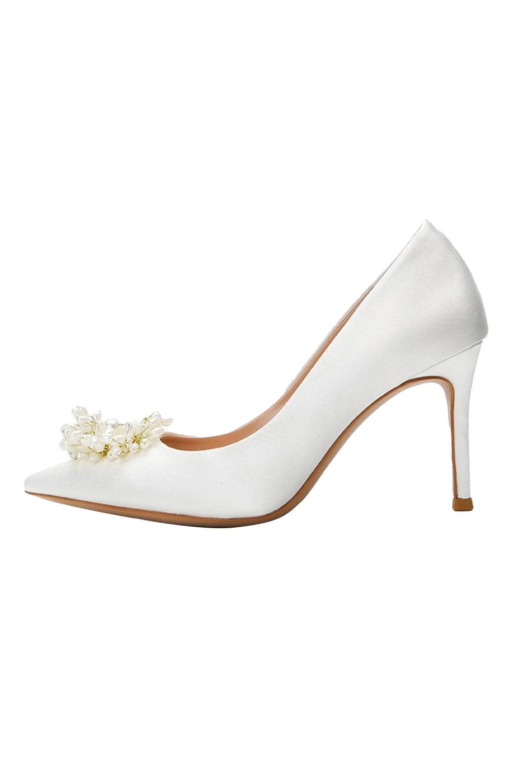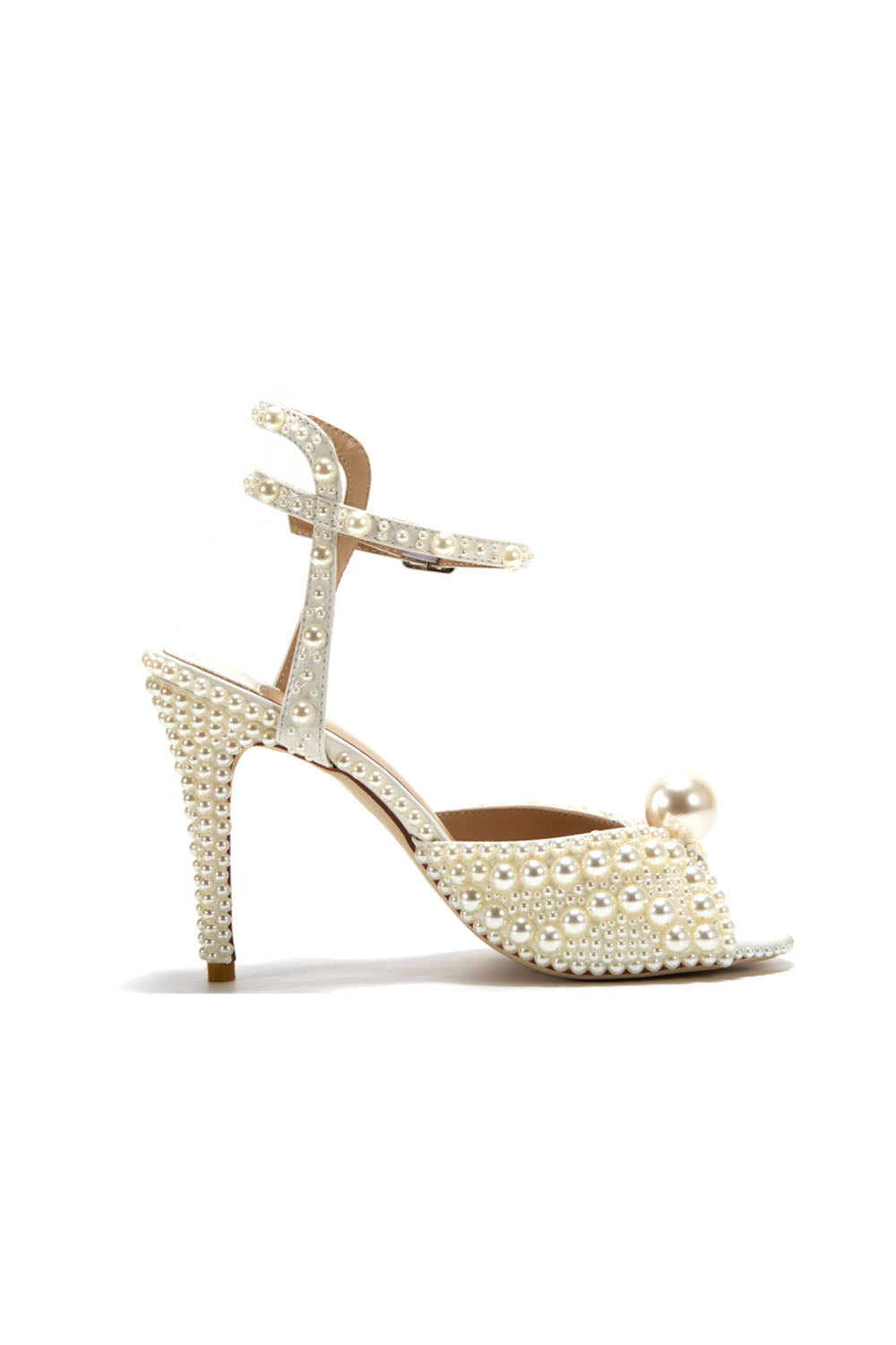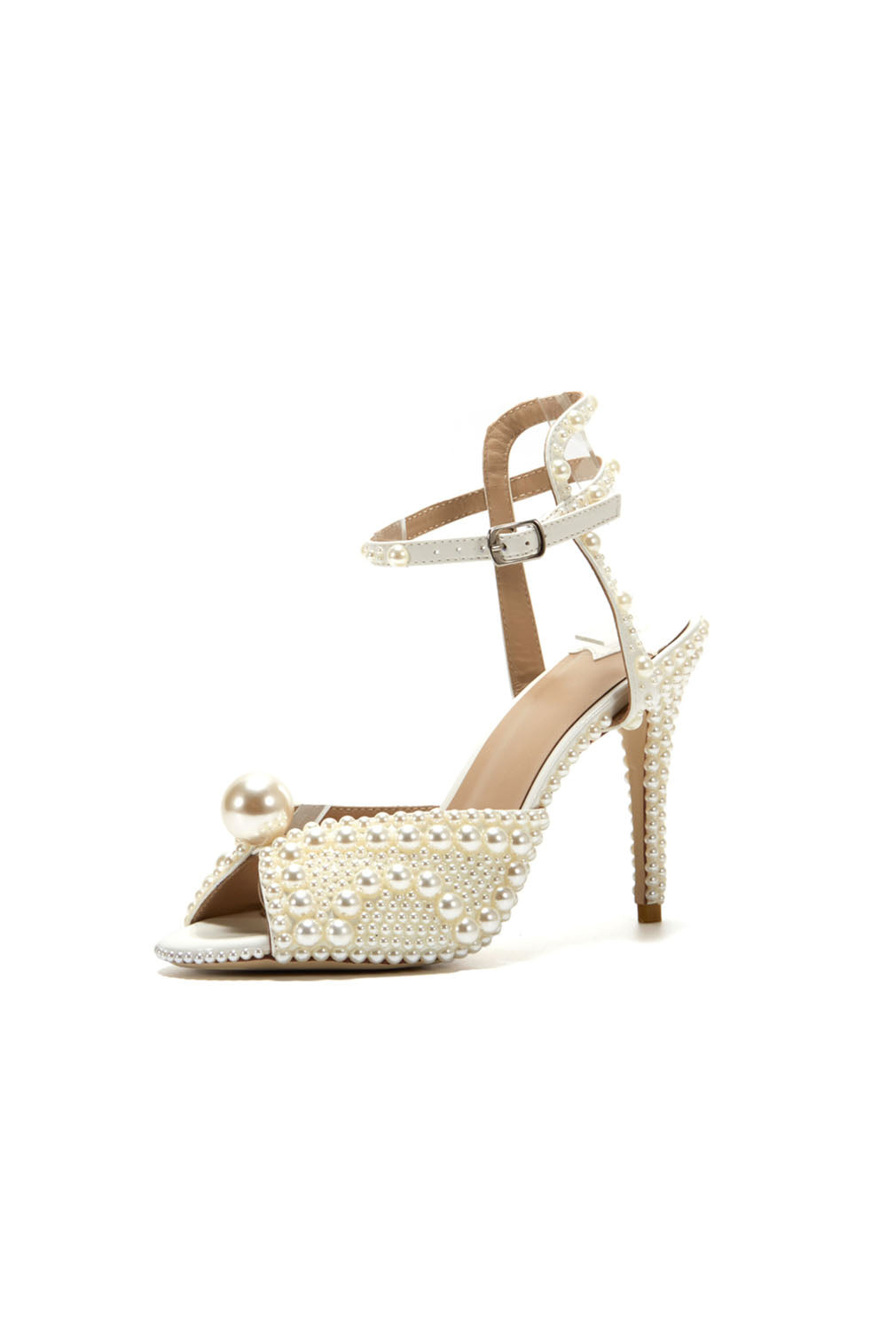 White Pearl Wedding Sandals Vintage Peep Toe Ankle Strap Stiletto Bridal Heels