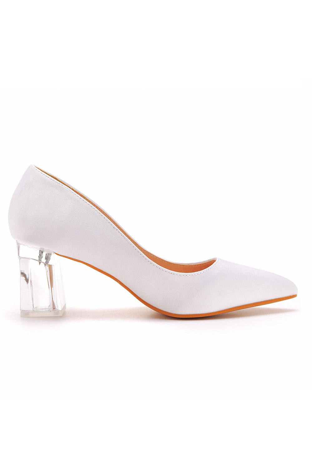 White Pointed Toe Lace Ankle Strap Chunky Heels