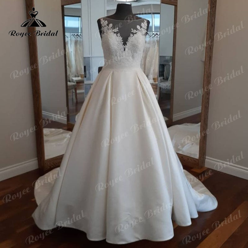 Roycebridal Satin Lace Appliques Wedding Dress Backless 2025 vestido de noiva princesa Wedding Ball Gown for Women Sweep Train