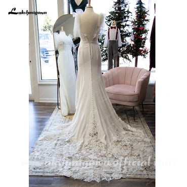 • Roycebridal Civil Mermaid Wedding Gowns abito da sposa Beach Summer Cut V Neck Lace Appliques Boho Bridal Dress