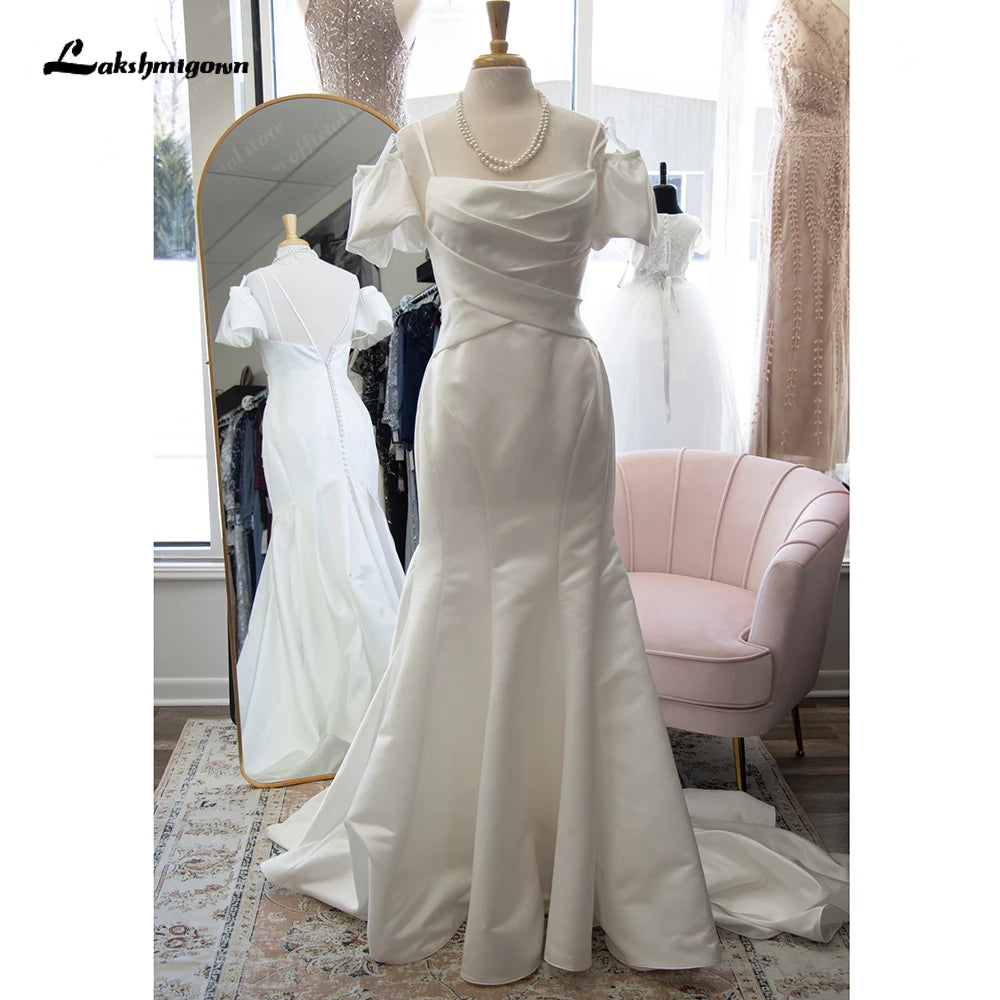 • Roycebridal Mermaid Boho Satin Pleat Women Wedding Dress Bridal Gown Backless robe mariage femme