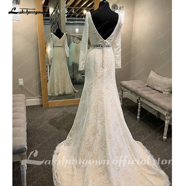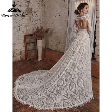 • Roycebridal Lakshmigown Long Sleeves Boho Wedding Dresses V Neck Bohemian Lace