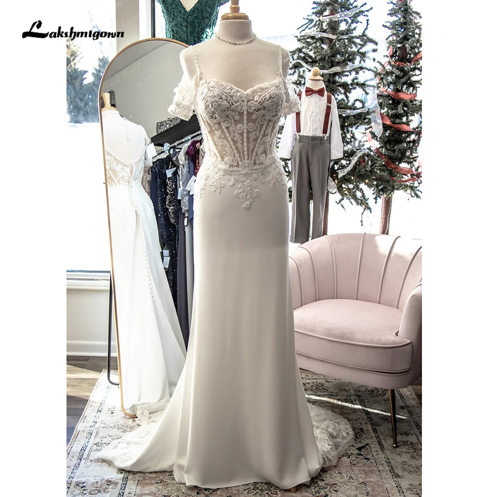 • Lakshmigown Luxury Lace Boho Wedding Gowns Off The Shoulder Robe Mariee Sparkly Church Champagne Bridal Dresses Sweetheart