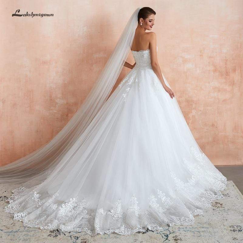 Brand Name: lakshmigownActual Images: YesNeckline: V-neckSleeve Length(cm): SleevelessWedding Dress Fabric: TulleTrain: Sweep/ Brush TrainOrigin: CN(Origin)For Pregnant Women: NoDresses Length: Floor-LengthBack...