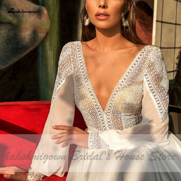 Brand Name: lakshmigownActual Images: YesNeckline: V-neckSleeve Length(cm): FullWedding Dress Fabric: ChiffonTrain: Sweep/ Brush TrainOrigin: CN(Origin)For Pregnant Women: NoDresses Length: Floor-LengthBack...