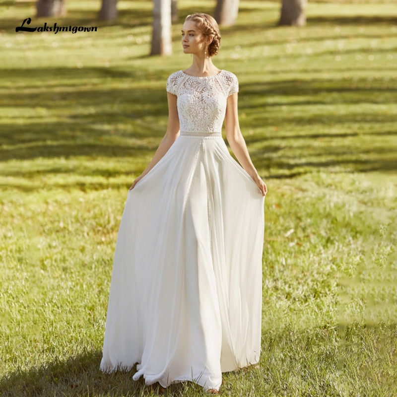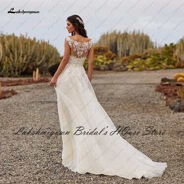 Roycebridal Lakshmigown Lace Plus Size Boho Wedding Dress vestido de noiva simples Cap Sleeves Chiffon Beach Bridal Dresses robe de mariee