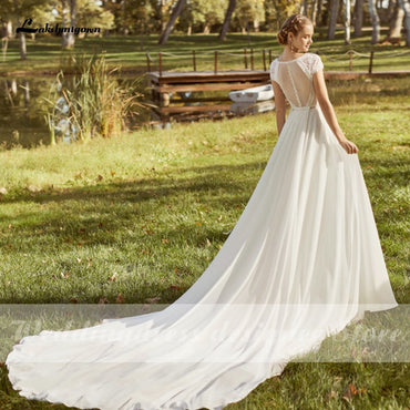 Brand Name: lakshmigownActual Images: YesNeckline: SCOOPSleeve Length(cm): ShortWedding Dress Fabric: ChiffonTrain: Sweep/ Brush TrainOrigin: CN(Origin)For Pregnant Women: YesDresses Length: Floor-LengthBack...