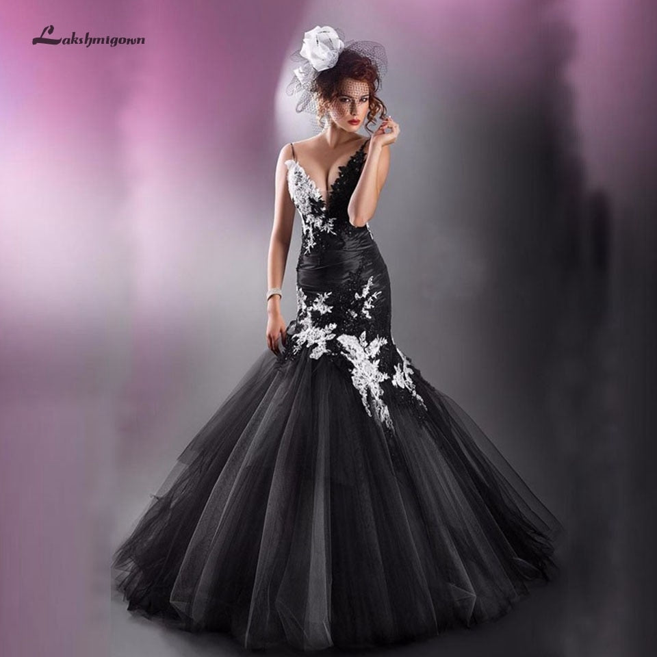• Roycebridal Lakshmigown Gothic Black White Mermaid Wedding Dress 2019 Trouwjurk Vintage Lace Bridal Gown Sexy Women Long Wedding Gowns