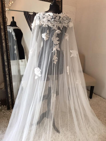 • Roycebridal Roycebridal Long Bridal Wedding Cape Veil With Lace multiple White/ivory Wraps Appliques Lace Wedding Jacket Bridal Cloak