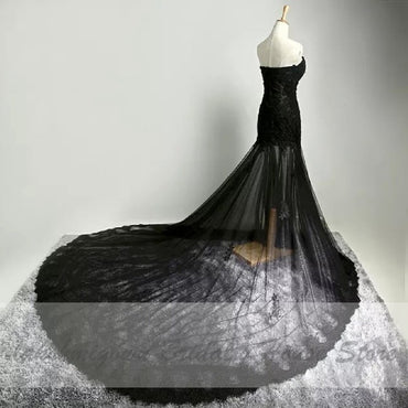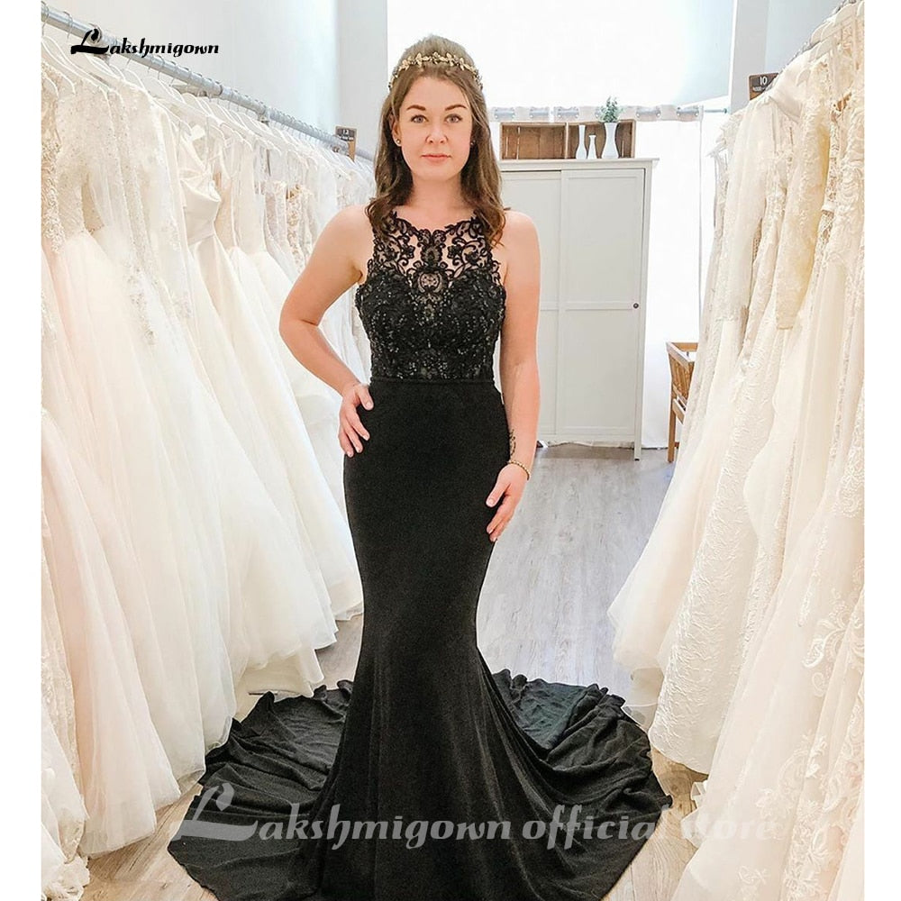 • Roycebridal Lakshmigown Gothic Black Mermaid Wedding Dresses Lace Court Train Vintage Bridal Gowns 2021 Plus Size Wedding Wear