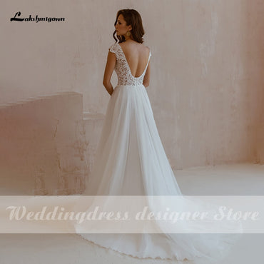 • Roycebridal Lakshmigown White ivory Beach Wedding Dresses 2021 A Line Lace Bride Dresses Chiffon Wedding Gowns Vestidos de novia