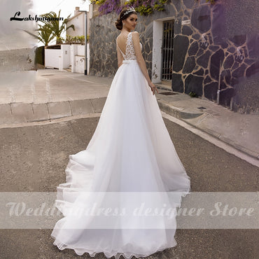 • Roycebridal Lakshmigown Two Pieces Elegant V-Neck Lace Backless Wedding Dress Simple Beach Sleeveless Bridal Gowns for woman Robe de mariee