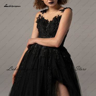 • Roycebridal Lakshmigown Gothic Black Wedding Dress 2022 Sexy Bridal Robe Lace Flowers Backless Wedding Gowns Side Split Trouwjurk Plus Size