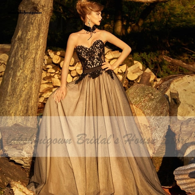 • Roycebridal Lakshmigown Simple Black Lace Bidal Wedding Dress 2021 Robe Gothic A Line Wedding Dresses Floor Length Dinner Party Gowns