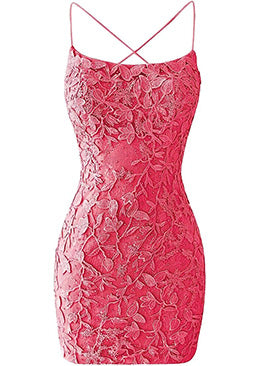 Spaghetti Straps Lace Appliques Homecoming Dresses