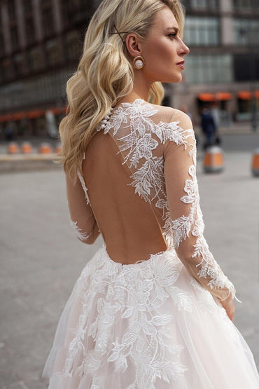 Roycebridal Long Sleeve Boho Wedding Dresses V Neck Backless Ivory Lace Appliques Beach Bridal Gowns Bohemian Wedding Dresses Custom Made