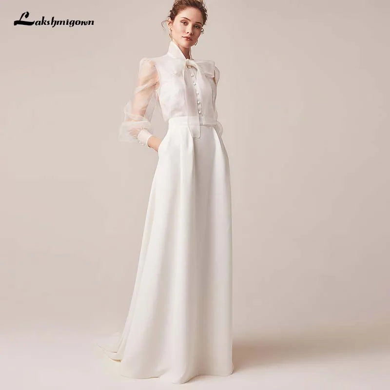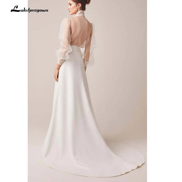 Brand Name: lakshmigownActual Images: YesNeckline: V-neckSleeve Length(cm): FullWedding Dress Fabric: Organza and TulleTrain: Sweep/ Brush TrainOrigin: CN(Origin)For Pregnant Women: YesDresses...