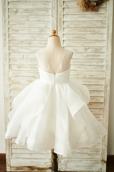 Ivory Lace Satin Wedding Flower Girl Dress, Champagne Belt