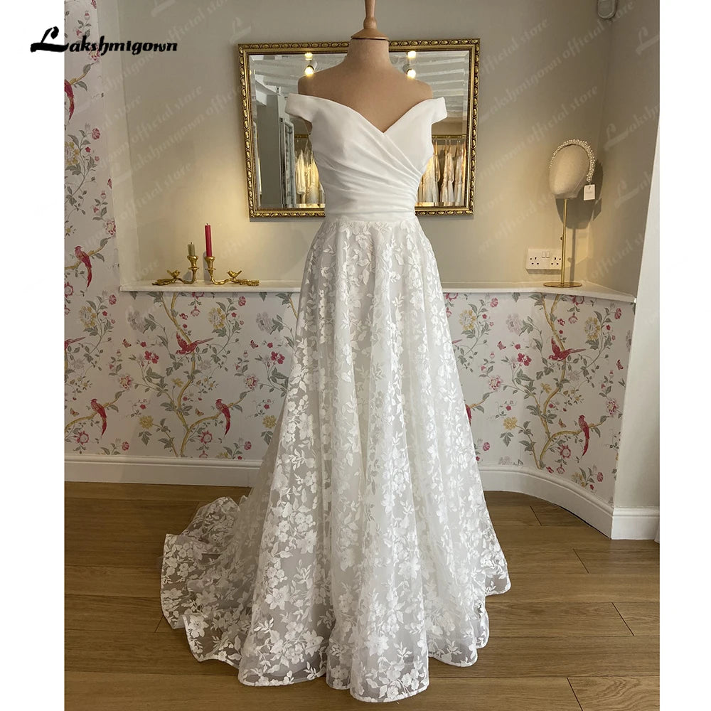 Roycebridal Off Shoulder A Line Wedding Dresses For Women Lace Floral Bridal Gown Backless Summer Boho Robe De Mariee