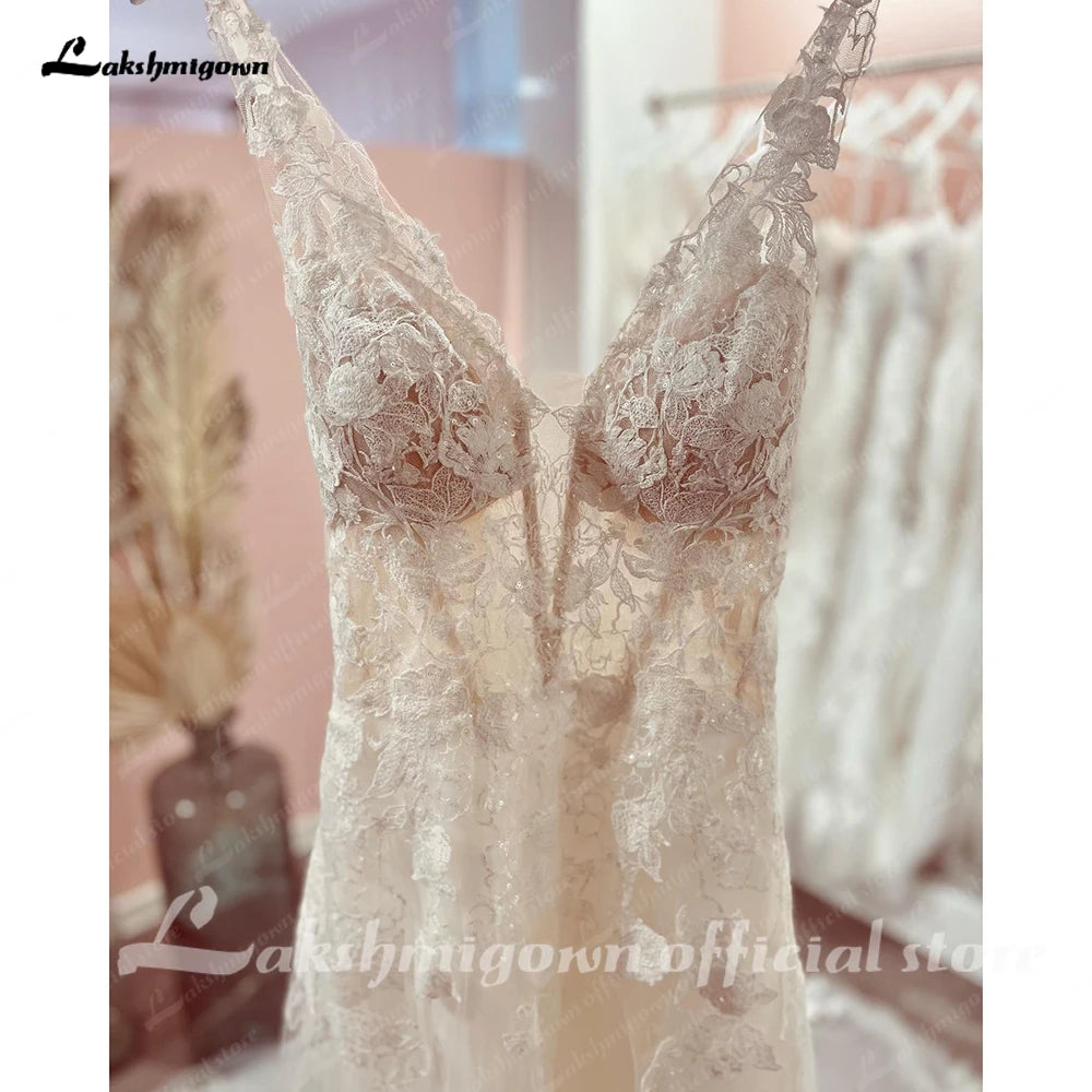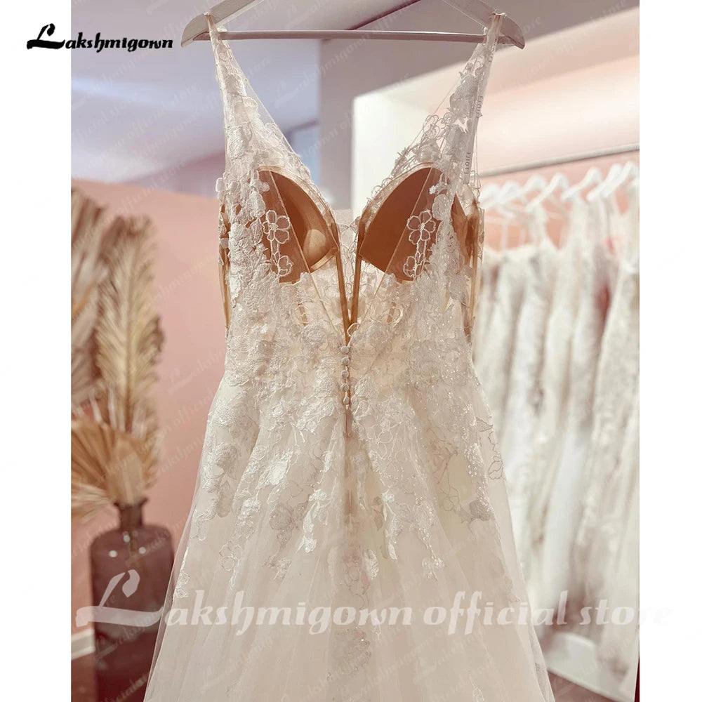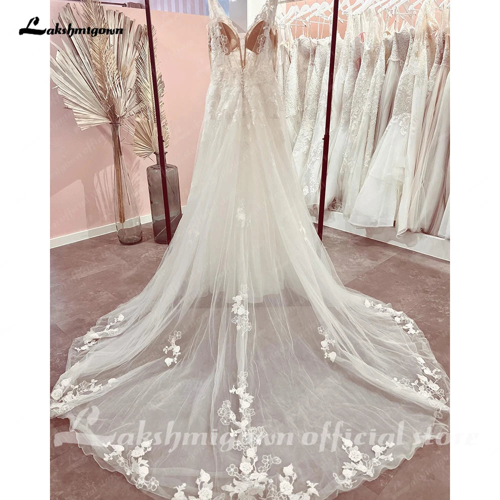 Roycebridal V-Neck Sleeveless Lace Appliques A-Line Backless Bridal Gowns Court Train Wedding Dresses Robe de marie