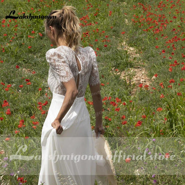 Roycebridal Long Sleeve Lace O Neck Short Bohemia Style Wedding Dresses