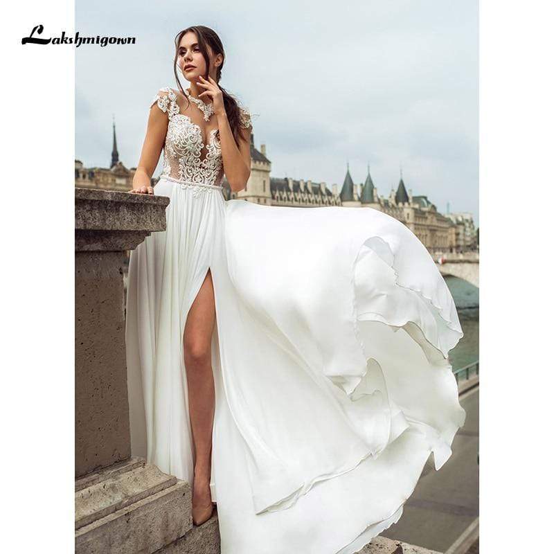 Roycebridal Lace Wedding Dresses chiffon Side Split Beach