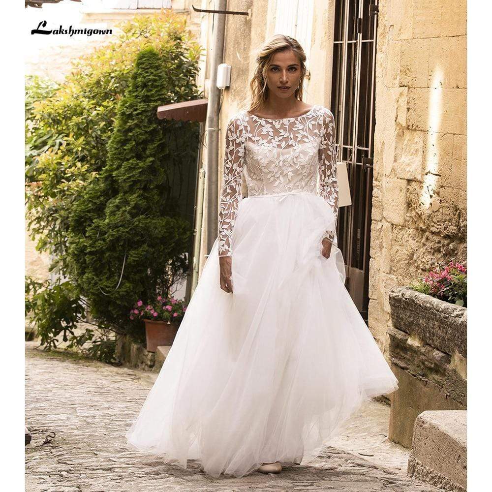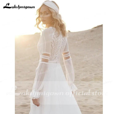 Roycebridal Long Sleeve Lace Chiffon Boho A Line Wedding Dresses