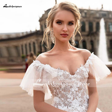 Roycebridal Lace Puff Short Sleeve Romantic Bridal Wedding Dresses