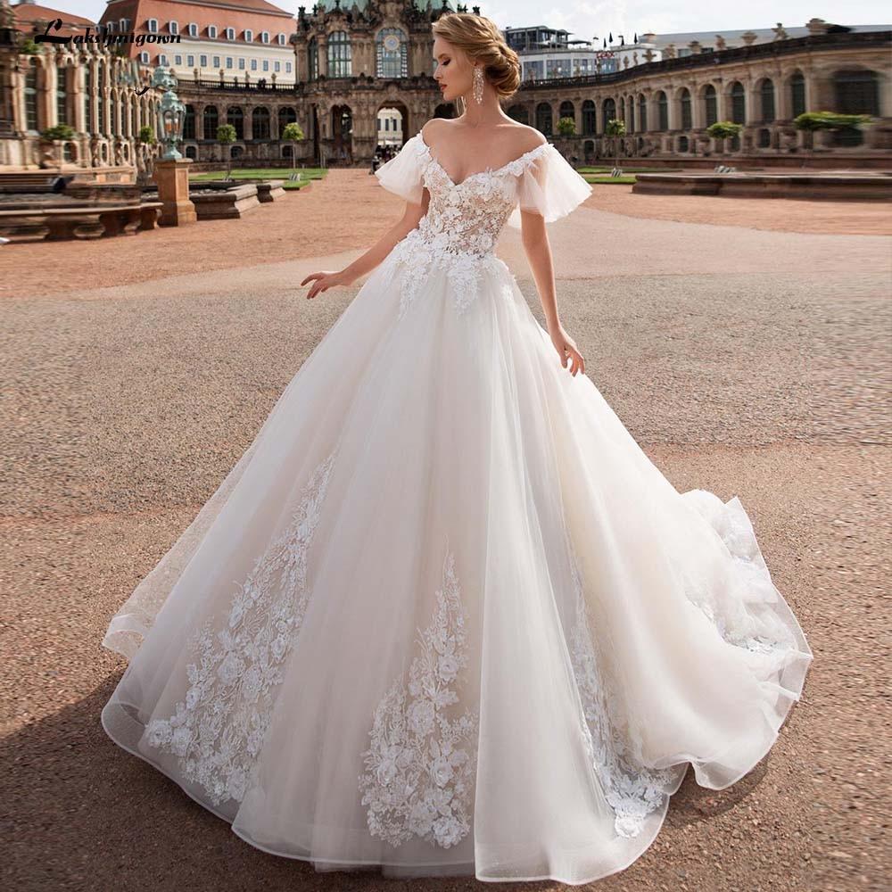 Brand Name: lakshmigownActual Images: YesNeckline: V-neckSleeve Length(cm): SleevelessWedding Dress Fabric: TulleTrain: Sweep/ Brush TrainOrigin: CN(Origin)For Pregnant Women: YesDresses Length: Floor-LengthBack...