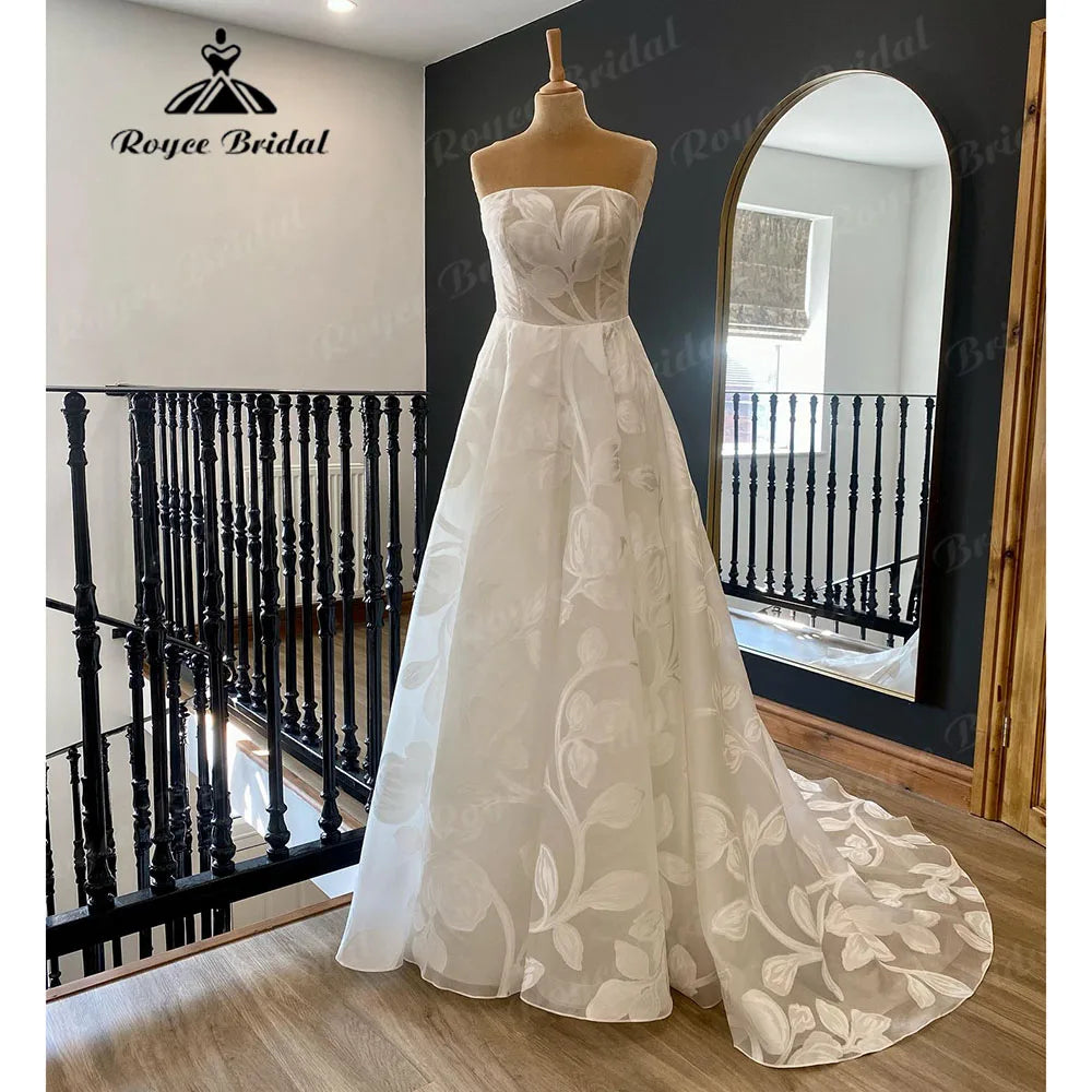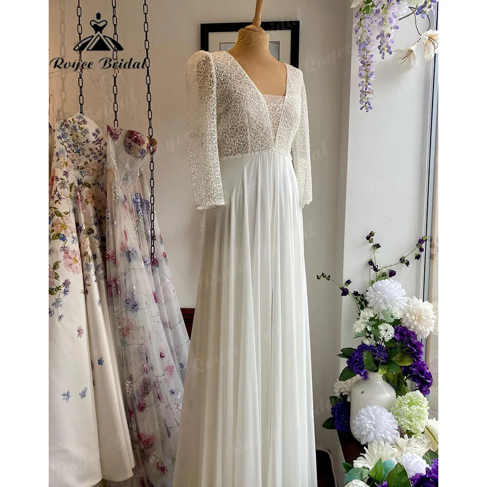 • Roycebridal Luxury Lace Floral Boho Wedding Dress Beach Summer 2025 Vestidos Civil Bridal Wedding Gowns Plunging V Neck