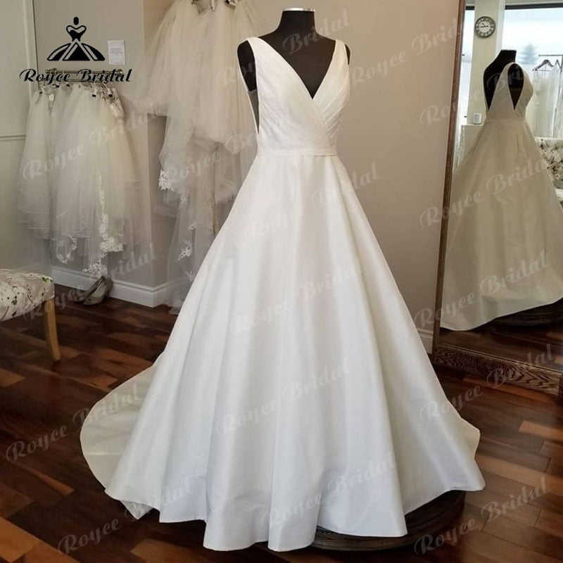 Roycebridal Simple V Neck Satin V Neck A Line Wedding Dress with Bow 2025 Bridal Gowns Custom Made Vestidos De Novia Formal Roycebridal