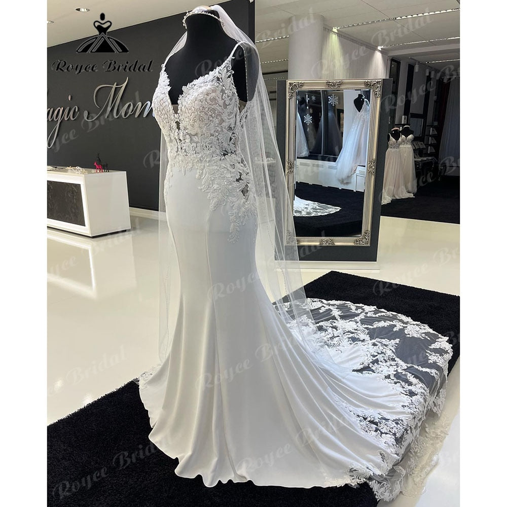 Roycebridal Sexy Mermaid/Trumpet Soft Satin Lace Wedding Dress for Women 2025 Vedtidos De Noiva Bridal Gowns Spaghetti Straps