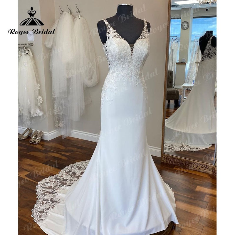 Roycebridal Sexy Deep V Neck Lace Mermaid/Trumpet Wedding Dress Court Train Appliques 2025 Spaghetti Straps Vestidos De Novia Open Back