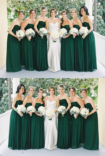 Adorable and fun, this chiffon emerald green bridesmaid dress with a strapless design and sweetheart neckline enhances the figure on...