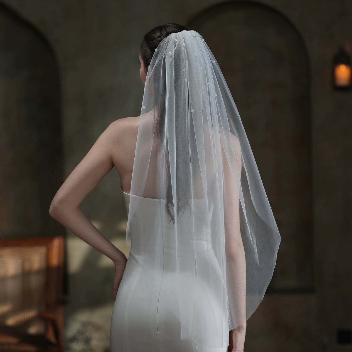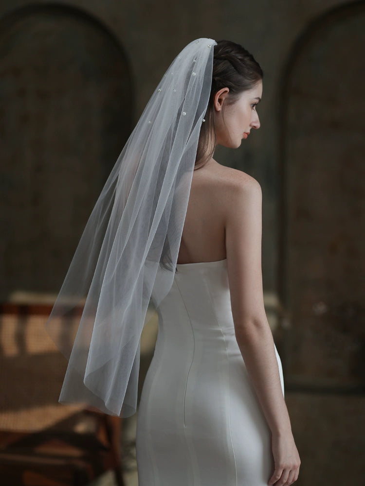 Roycebrial French Single-layer Bridal Veil Simple Retro Beaded Single-layer White Wedding Photo Headdress