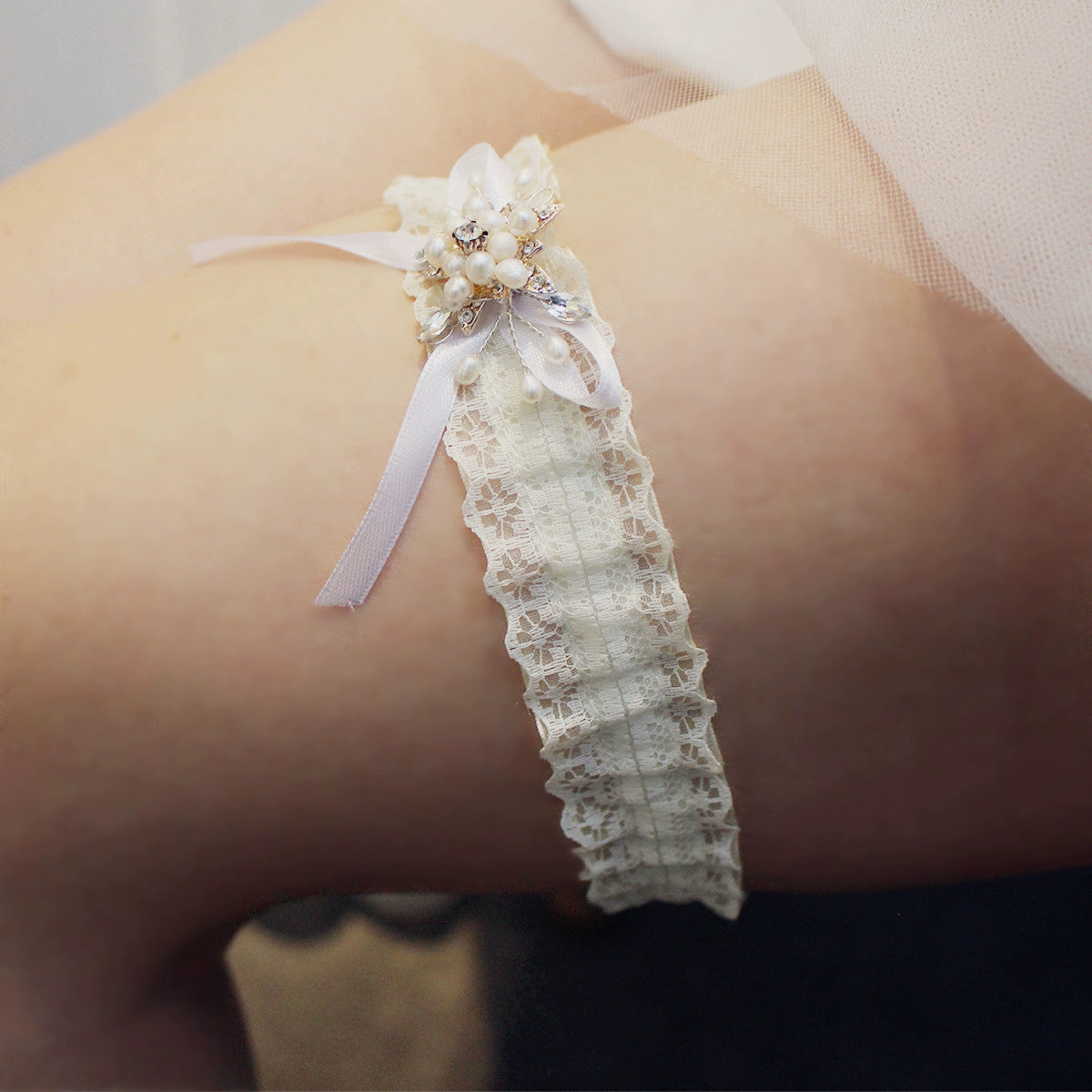 Roycebrial Wedding Garter Heavy Handmade Freshwater Pearl Garter
