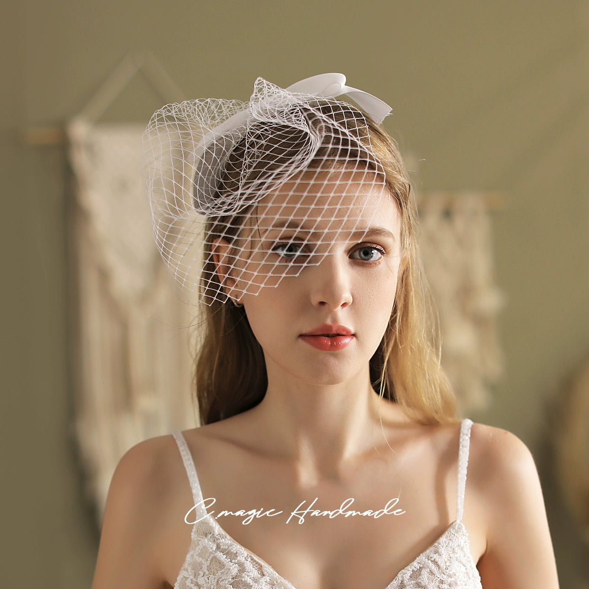 Roycebrial French Retro Hepburn Bride Bow Veil White Wedding Dress Cheongsam Certificate Photo Props Headdress