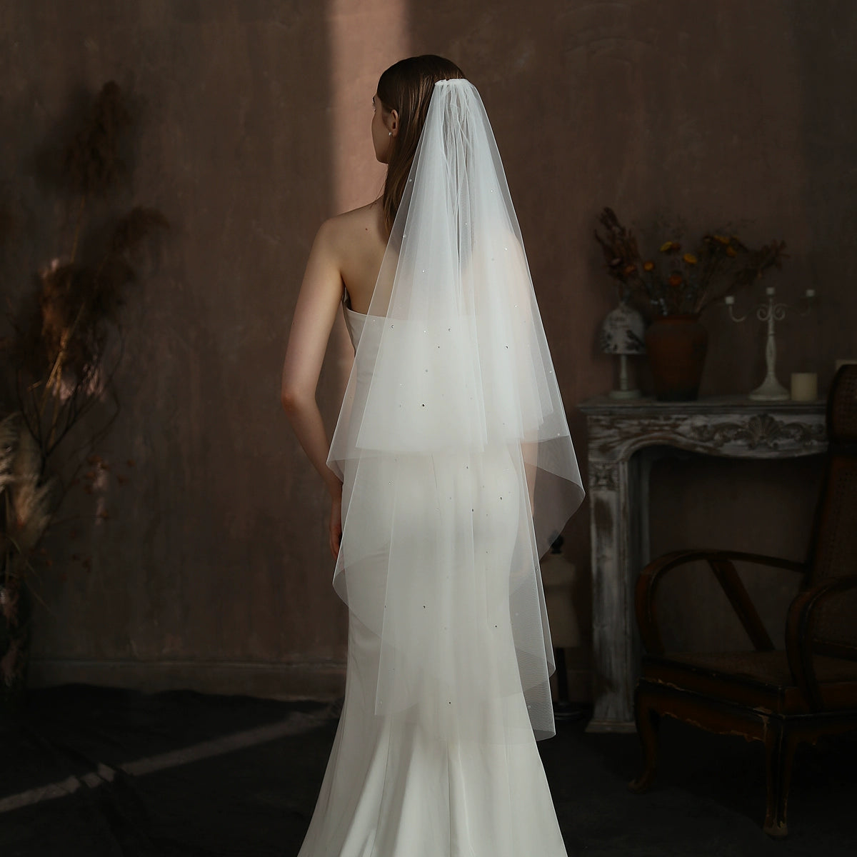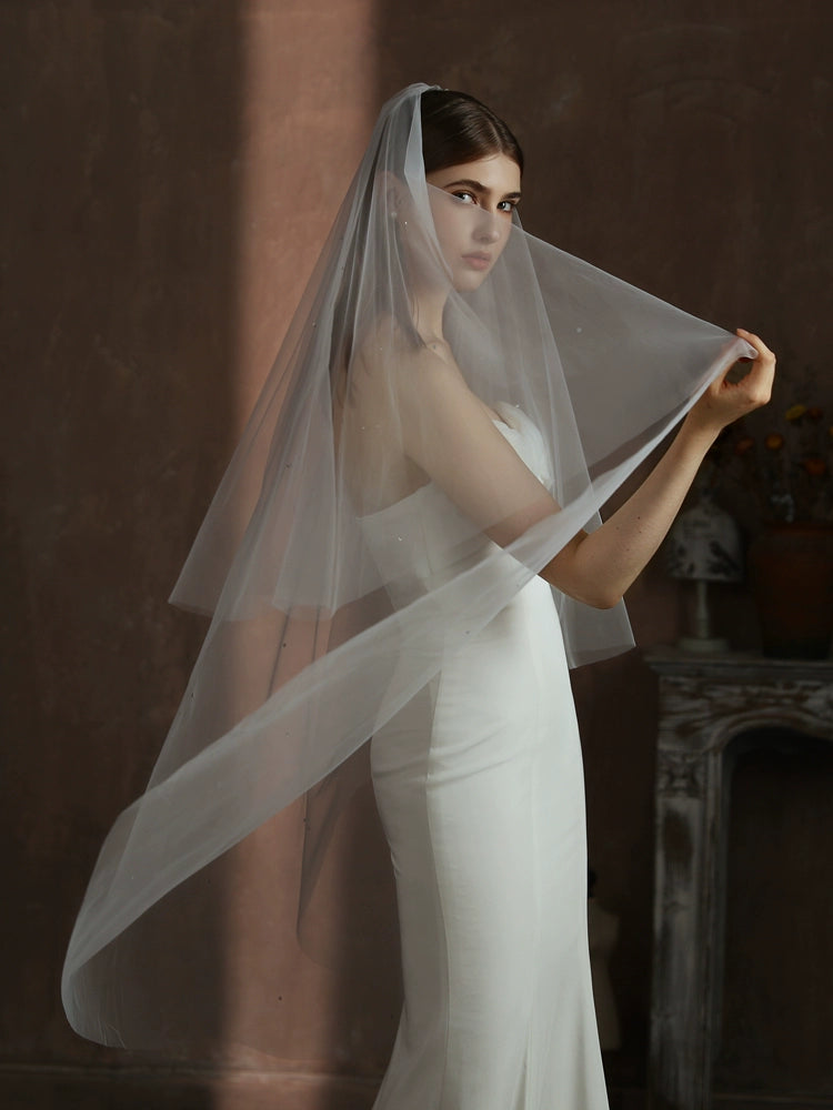 Roycebrial Simple White Double-layer Rhinestone Long Wedding Travel Photo Studio Styling And Makeup Bridal Veil For Going Out