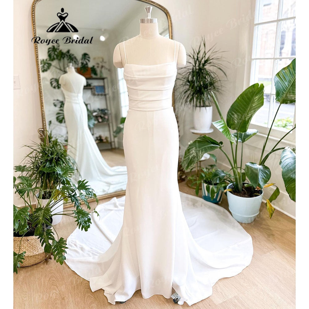 Roycebridal Ivory Mermaid Wedding Dress Satin Pleat Bride Dresses Appliques Beach Boho Wedding Party Dress