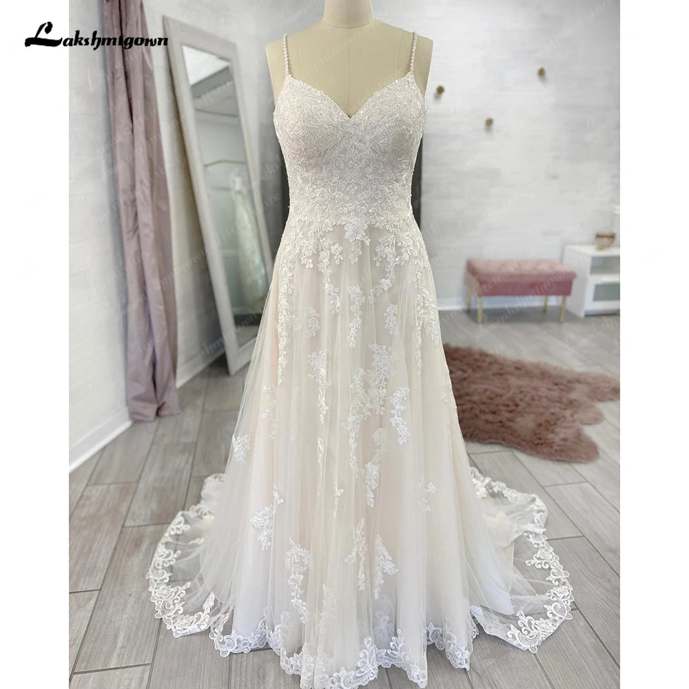 Roycebridal Spaghetti Lace Sleeveless Wedding Gown Lace Appliques Boho Wedding Dress Backless Sexy robe de mariee Wedding Party gowns