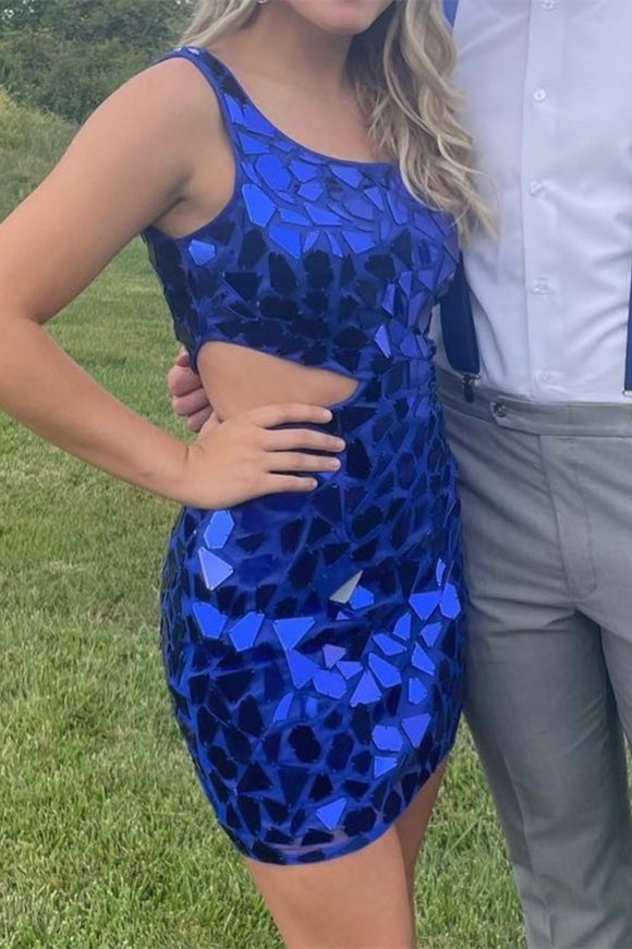 Jaliyah | Green Cut Glass Mirror One-Shoulder Cutout Short Party Dress
