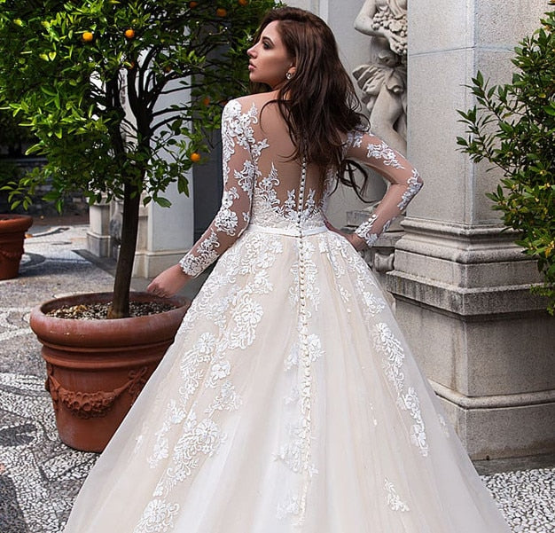 Roycebridal Muslim Wedding Dresses Ball Gown Long Sleeves Tulle Appliques Lace Dubai Arabic Wedding Gown Bridal Dress Vestido De Noiva